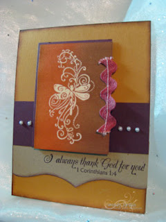 Wendy, this is just gorgeous! Beautiful blend of the colors and the design and detailing are wonderful! Great idea with the shimmerz! Really heart that touch of rick rack, too! Lovely card! Thanks so much for playing Stamping In Time!